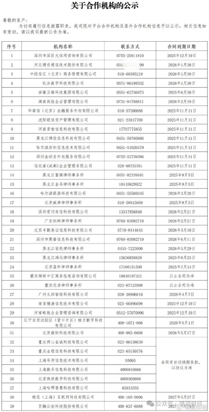 近日,哈银消金公布了39家妥洽机构名单,其中包含29家催收公司与10家助贷机构。